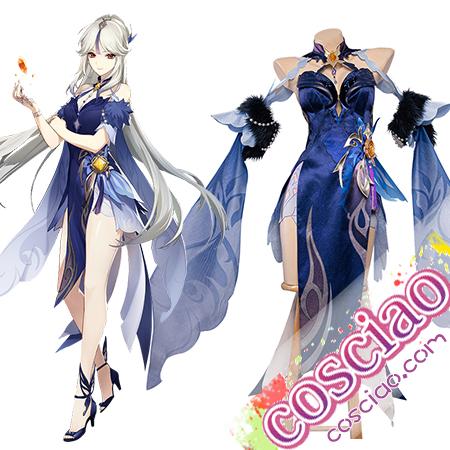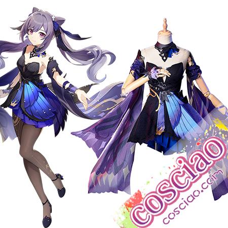 『原神』に登場する瑠璃七星の一人、刻晴の初期姿コスプレ衣装を提供します。ツインテールしているコスプレウィッグも追加購入できます。