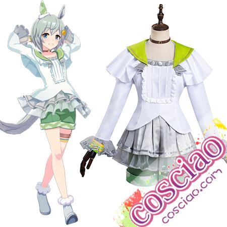 『ウマ娘 プリティーダービー』の登場キャラクター、白地にモデルと同じ緑と黄色をアクセントに配し、ショートパンツや耳に雲の意匠がある。