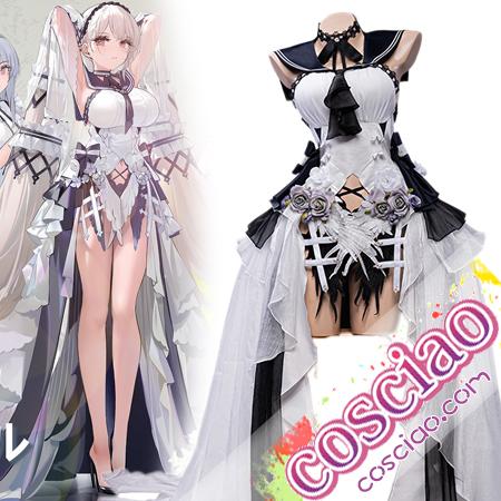 『アズールレーン』フォーミダブルのスキン「クラシック·ドレスアップ」コスプレ衣装を提供します、純白のミニドレスに大きなリボンが付いたベールがセットです。